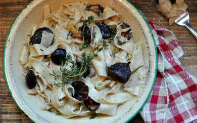What I love about this recipe is that it features mushrooms two ways – infused right into the pasta dough,