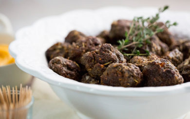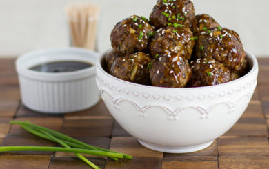 Mushrooms are blended with ground beef and seasoned to create the perfect appetizer-style meatball. Serve with Spicy Sriracha Aioli for