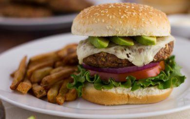 These juicy turkey burgers are extra satisfying when blended with 50% mushrooms and topped with fresh, creamy Avocados and Swiss