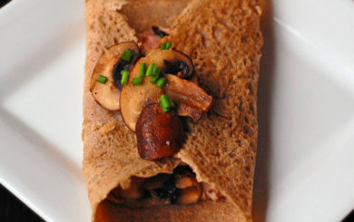 A galette filled with Emmenthal cheese, thinly sliced Black Forest ham and herb-sautéed mushrooms is a light, yet satisfying way