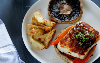 Prep Time: 5 mins. | Cook Time: 10 mins. Ingredients 2 portabello mushroom with the stems trimmed 1 thick slice of haloumi cheese