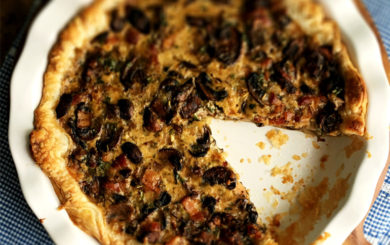Prep Time: 10 mins. | Cook Time: 25 mins. | Serves: 2 as a main Ingredients 2 slices bacon, roughly chopped 60g white mushrooms, roughly